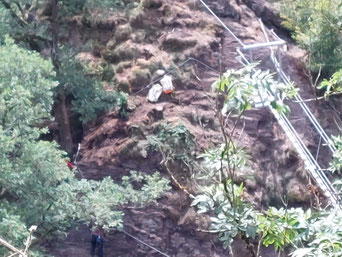 Klimmen en klauteren langs steile wanden, over touwbruggen en door kloven.